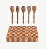 Due accessori fondamentali per chi ama cucinare come un professionista: un tagliere in legno massello 35x24x5cm e un set di utensili in teak di 5 pezzi, entrambi in legno certificato FSC. Questa combinazione offre una base solida per preparare ingredienti freschi, accompagnata dagli strumenti ideali per mescolare, servire e completare la tua preparazione culinaria.